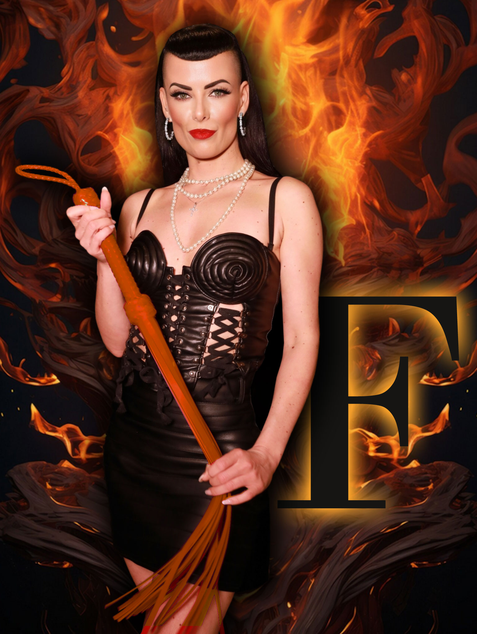 Im warmen Flackern der Kerzen stehe ich aufrecht, ganz in meiner Ruhe, ganz in meiner Kontrolle. Ich höre deine Schritte, leise, respektvoll – so, wie es sich in meiner Gegenwart gehört. Ich lasse die feinen Lederriemen durch meine Finger gleiten, langsam, genussvoll, bevor ich sie leicht über deine Schulter führe – nur ein Hauch, ein kaum spürbares Streifen. Du beugst dich über. Gänsehaut, es knallt!